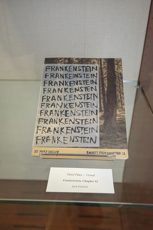 Adcock is one of the winners of the Monster Challenge, a contest sponsored by the Frankenstein Bicentennial, Washington University’s ongoing celebration of Mary Shelley’s novel and its enduring legacy. Students created sculptures, paintings, books, musical compositions and works of fiction that reimagined Frankenstein’s monster for the 21st century. Their work is now on view in Olin Library’s Gingko Room.