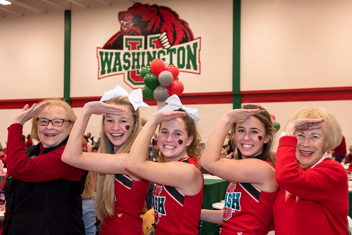 Friends and family gather at the Eliot Society’s family before the men’s and women’s basketball teams face off against NYU on Feb 15. (Photo: Sid Hastings/Washington University)