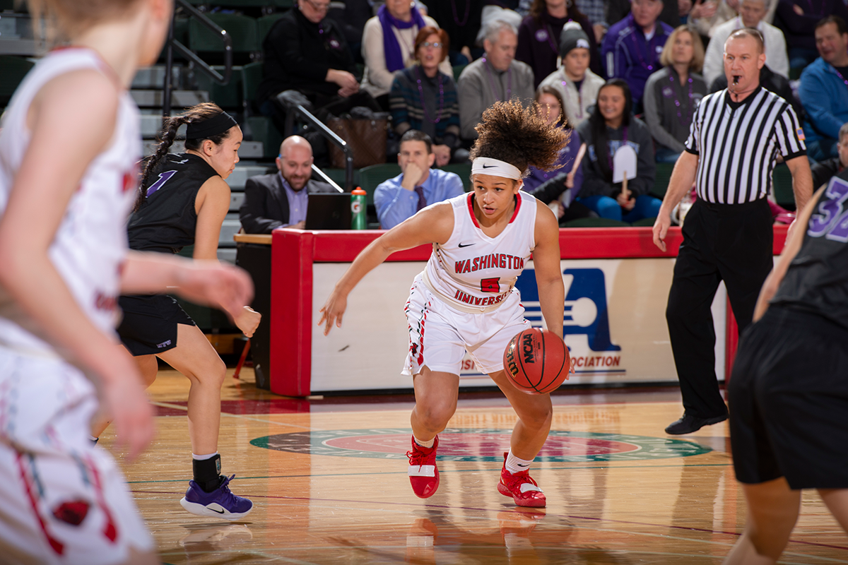 The WashU women’s basketball team plays against NYU on Feb 15. (Photo: Danny Reise/Washington University)