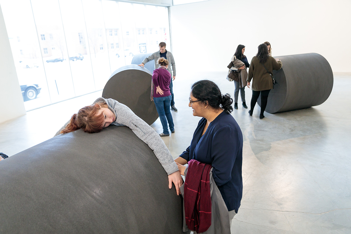 First-year medical students, including Adrienne Visani (left) and Nirmala Shivakumar,) enjoy Cristine Corday’s installation while visiting the Contemporary Art Museum St. Louis as part of a selective course. (Photo: Matt Miller/School of Medicine)