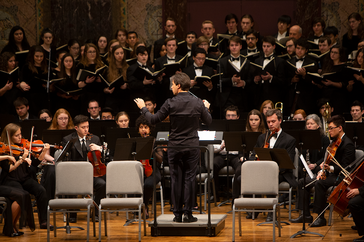 The Washington University Wind Ensemble, Symphony Orchestra and Choir perform for the Chancellor’s Concert on March 1 at the 560 Music Center. (Photo:Jerry Naunheim Jr./Washington University)