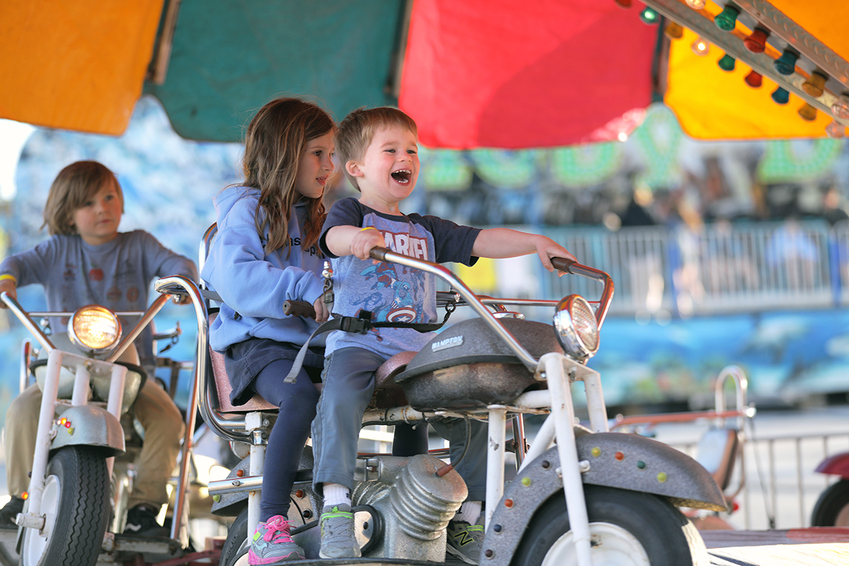 Kids enjoy a ride during Thurtene Carnival, which took place on the Danforth Campus April 12-14. (Photo: James Byard/Washington University)