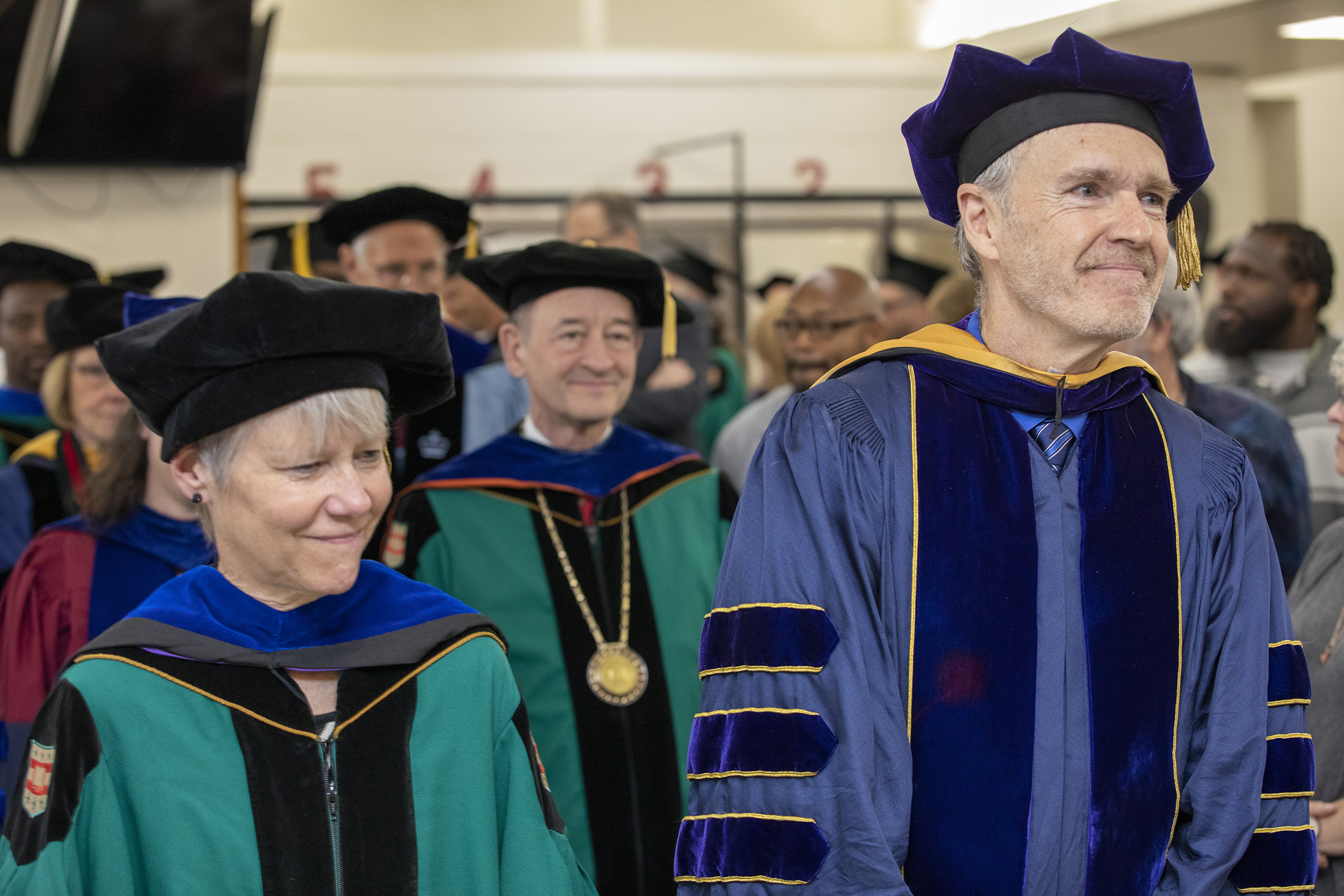 Barbara Baumgartner, associate director of PEP and a teaching professor in Women, Gender & Sexuality Studies in Arts & Sciences; and PEP director Robert Henke, professor of drama and comparative literature in Arts & Sciences, lead the procession.