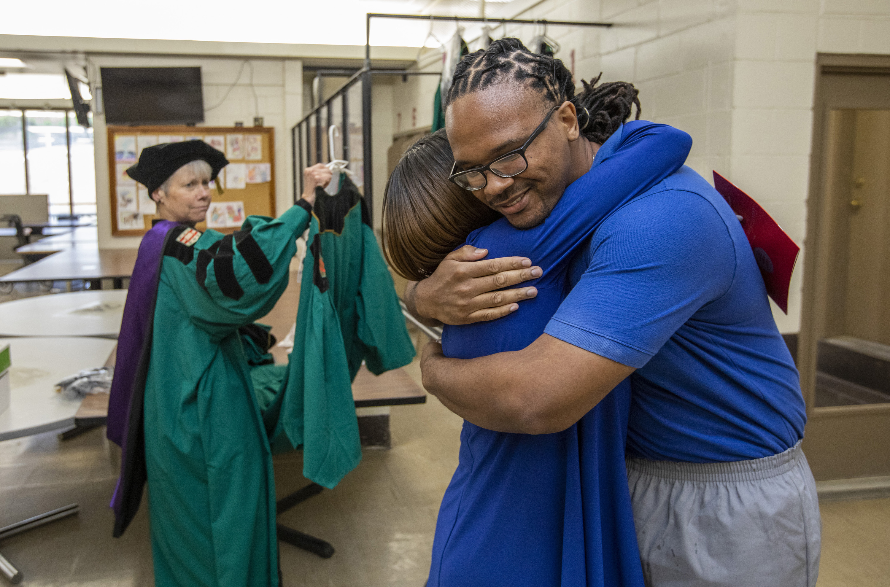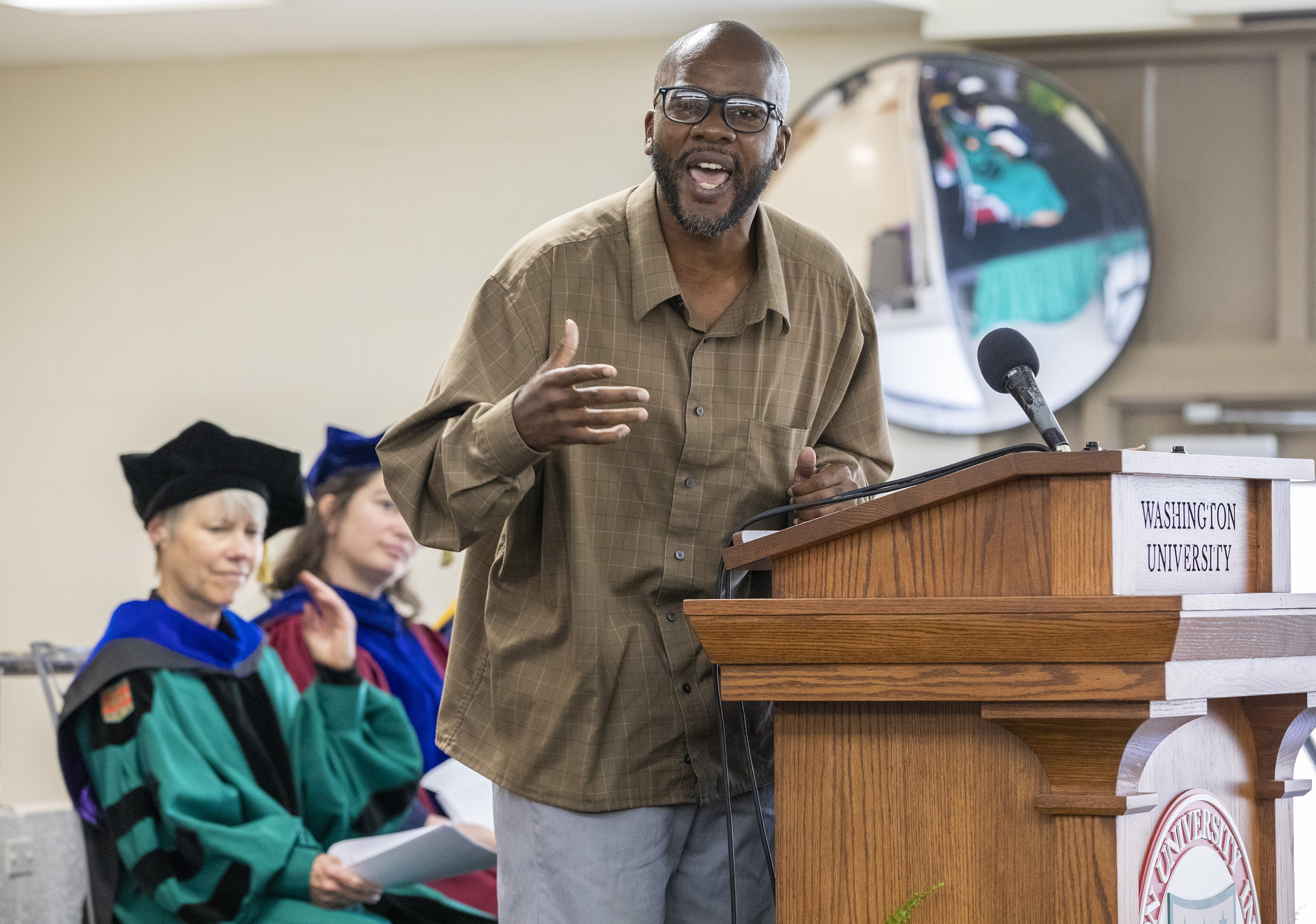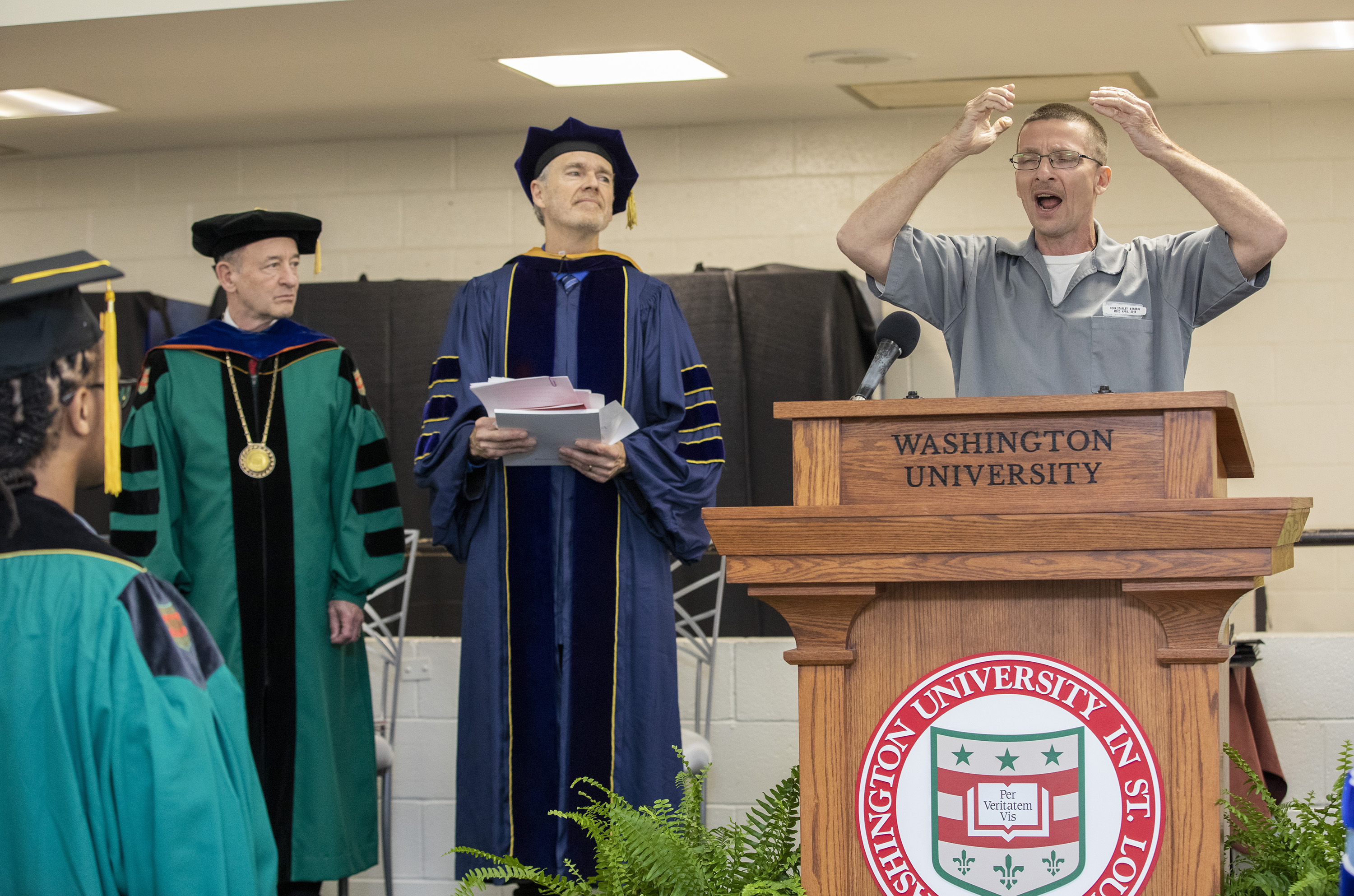 On May 22, the Washington University Prison Education Project (PEP) conducted its first Commencement at the Missouri Eastern Correctional Center in Pacific, Mo. Ten students earned associate’s degrees. The ceremony was held in the center’s visiting room.