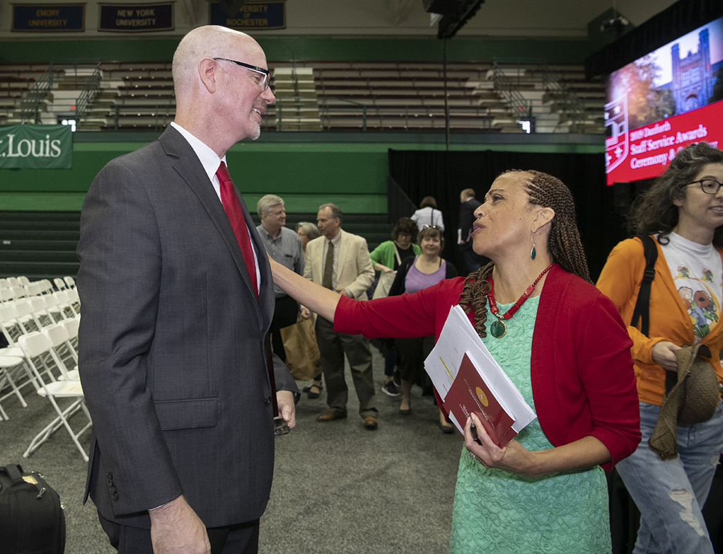 Thomas Brounk, director of mental health services at Habif Health & Wellness Center, received the Gloria W. White Distinguished Service Award at the annual Washington University in St. Louis Staff Day celebration May 20 in the Field House.