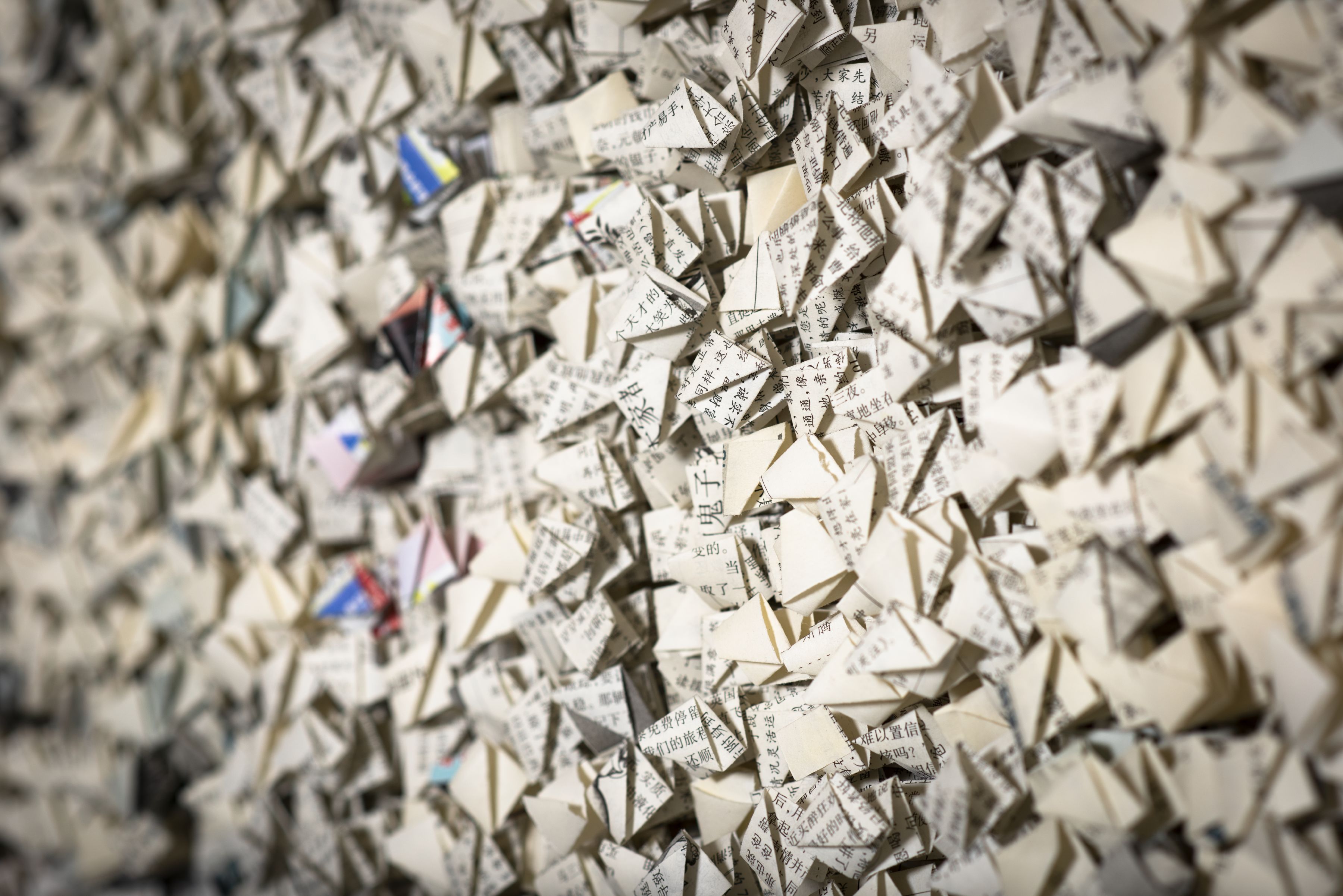 Lingrong Wang, detail from “Untitled,” 2019. Magazines and clear Nielsen styrene sheets.