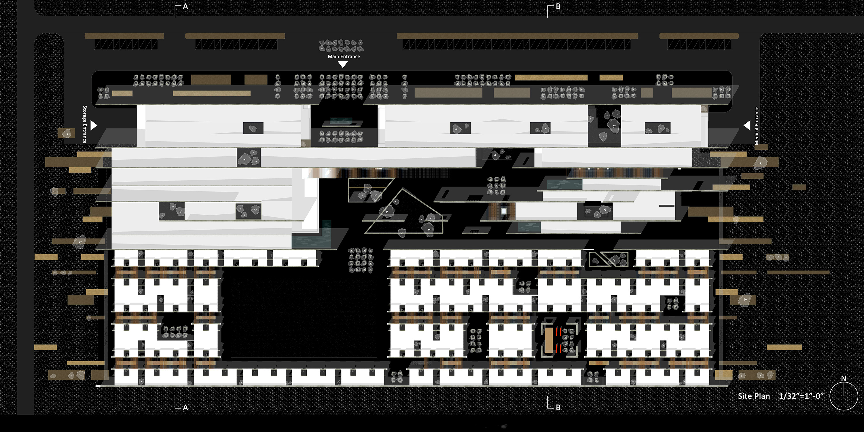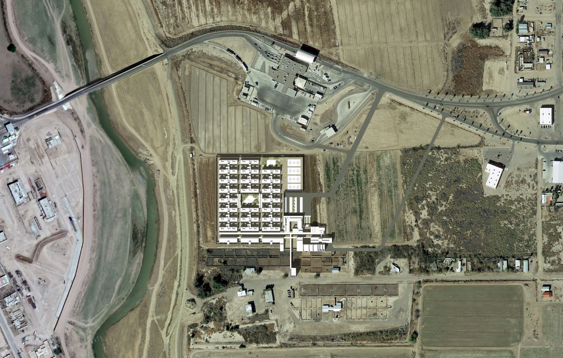 The demonization of immigrants and the preoccupation with building walls are political and cultural problems. Our studio imagined a radical shift in intention and agenda. We explored how one might design Residential Family Centers (to use ICE’s designation) that would prioritize humane treatment and care rather than barriers, incarceration and interrogation.