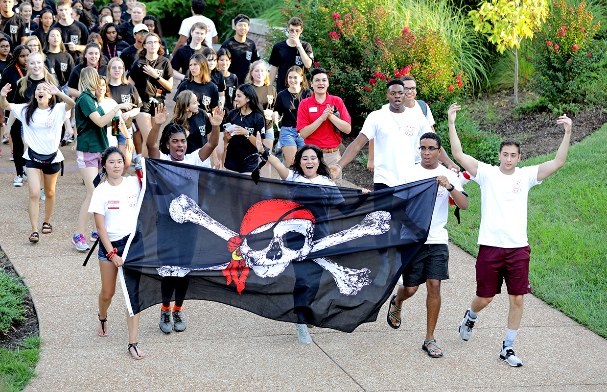 Martin told the students he knew the many questions running through their minds: Why aren’t the residence halls named Gryfindor or Slytherin? What’s in provel cheese? And will their parents ever actually leave? Parents, likewise, had their own questions, like what color to paint their child’s room now that it will be an office.