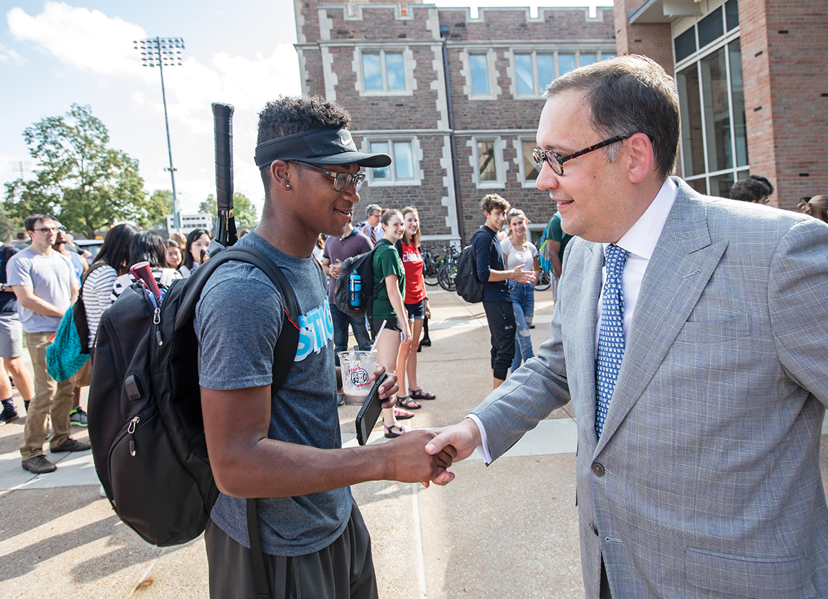 Asked how the university can contribute to the surrounding community, he lights up. Earlier, he told me that “the important role this university plays in the city is unique in higher education.” Now, he says, “I think we have a moral responsibility to the city of St. Louis. We are — literally — a beacon on a hill. How do we serve the community? We’re not a social service agency, but with our educational mission, our research mission,