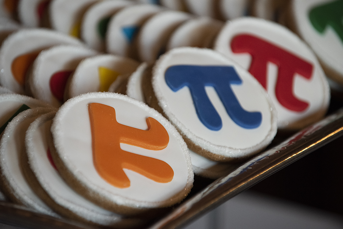 a mathematics professional learning program, and enjoy math-themed cookies. (Photo: Sid Hastings/Washington University)