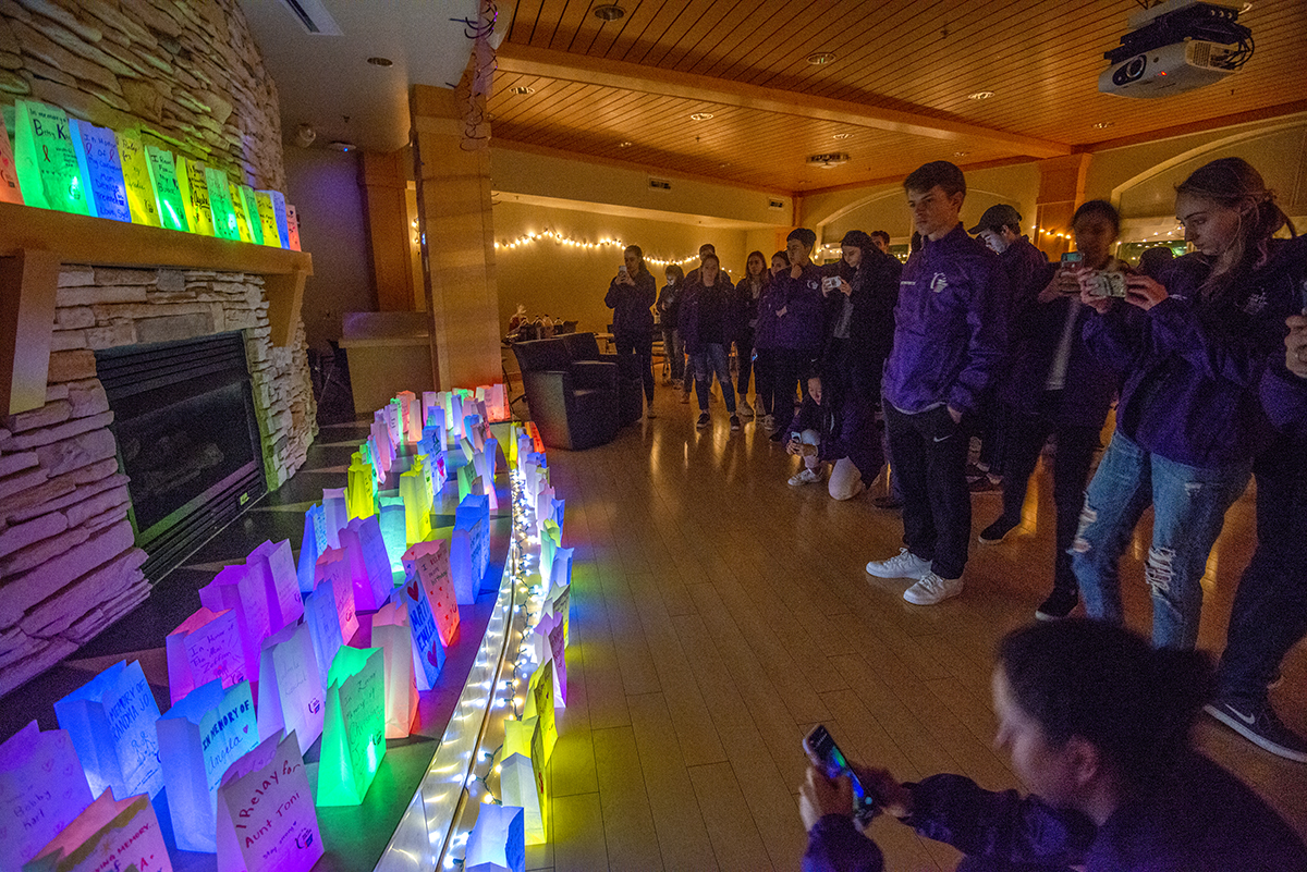 Relay for Life illuminated the night with its annual kickoff event “Let Hope Glow” on Nov. 21 in Ursa’s Fireside on the South 40. Students and faculty shared their stories about battling cancer, followed by a bag-lighting ceremony honoring loved ones that have been impacted by cancer. (Photo: Danny Reise/Washington University)