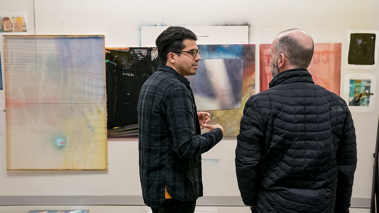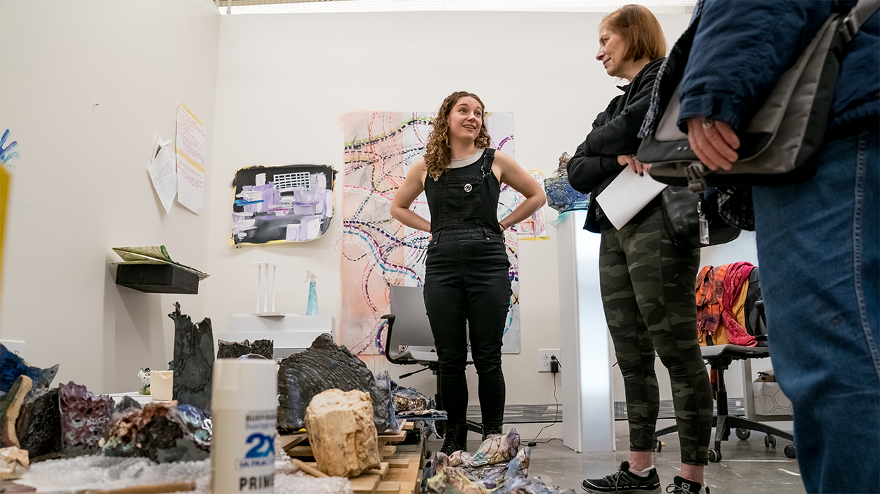 The Sam Fox School holds an open studio Jan. 25 in Weil Hall featuring the work of MFA in Visual Arts students alongside an open house for Island Press in Bixby Hall. (Photo: Whitney Curtis/Washington University)