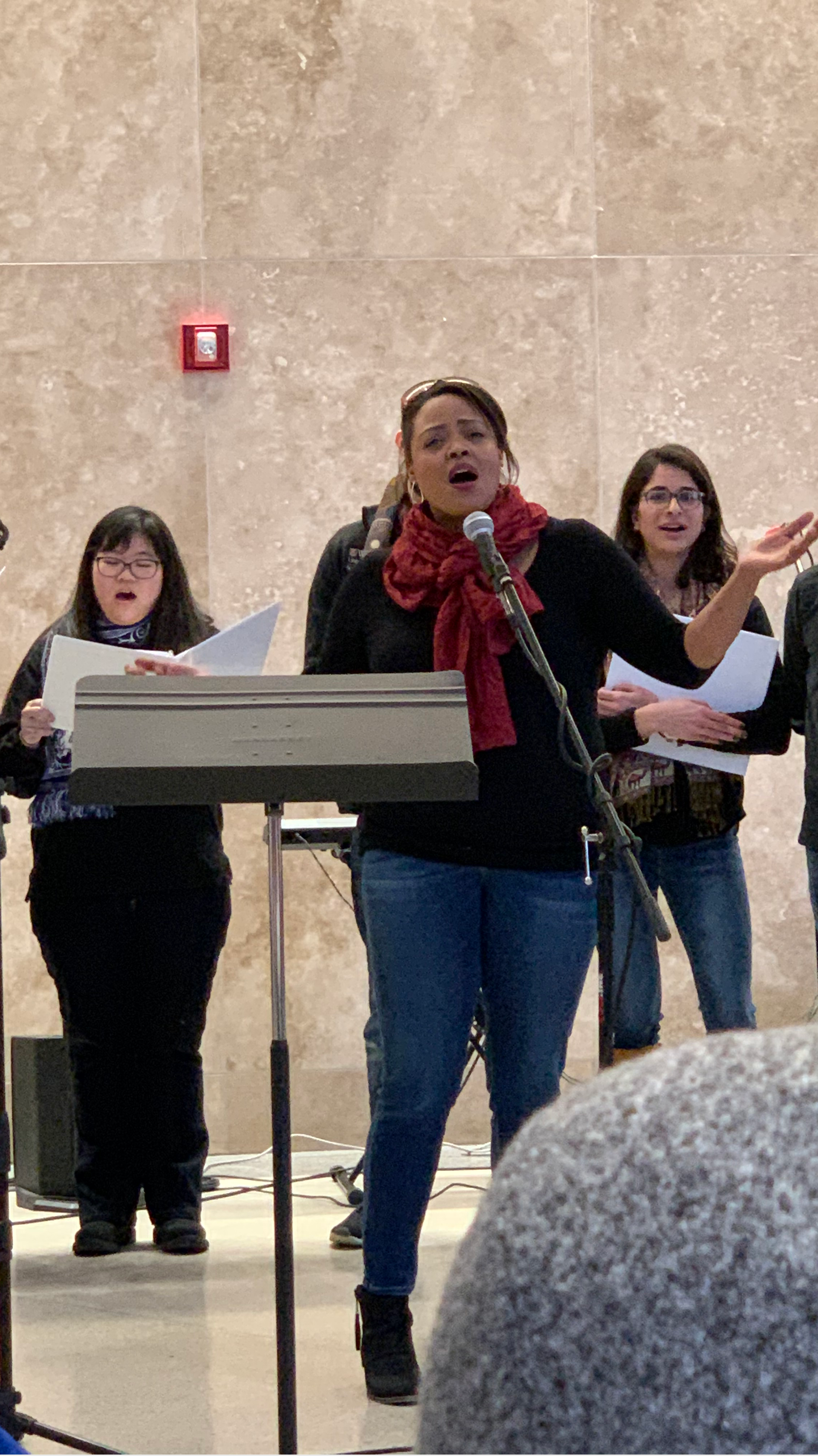 Members of the musical group the Histones sing Jan. 25 as part of the annual Medical Campus Winter Concert in the Center for Advanced Medicine. The free concert, sponsored by the Arts + Healthcare Program at Barnes-Jewish Hospital, features a wide range of musical performances from faculty, staff and students on the Medical Campus. (Photo: Gail Appleson/School of Medicine)