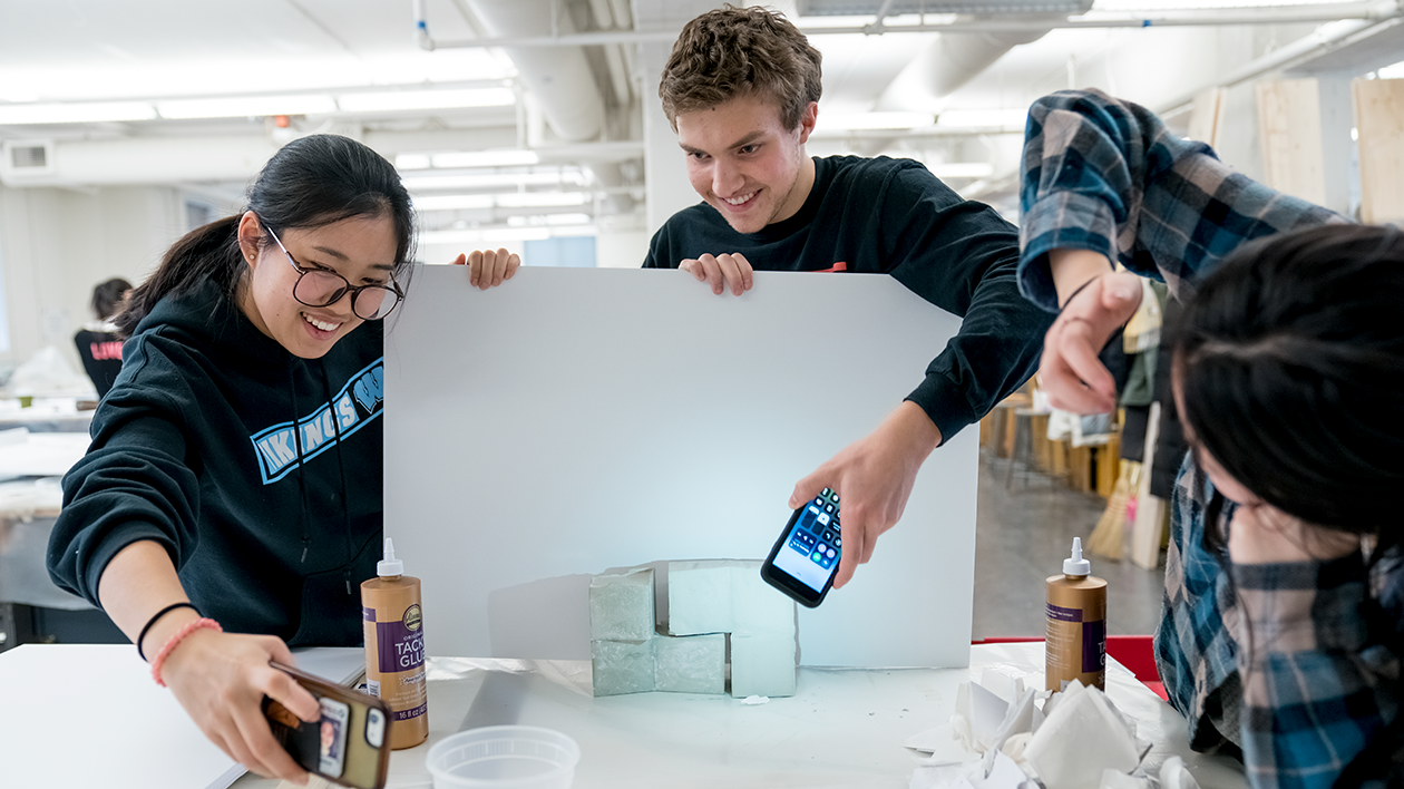 Sam Fox School of Design & Visual Arts second-year undergraduate architecture students work on their designs during the Laskey Charrette Jan. 25 in Givens Hall. (Photo: Whitney Curtis/Washington University)