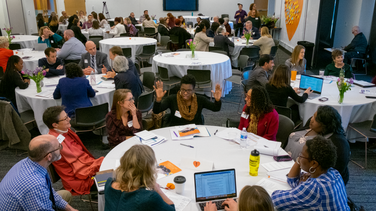 Educators from across the region gathered Jan. 16 for the program “Compelling Purpose: The Heart of Transformational Change,” hosted by the university’s Institute for School Partnership at Cortex Innovation Hall. (Photo: Sid Hastings/Washington University)
