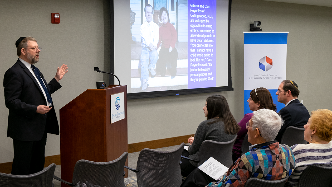 The John C. Danforth Center on Religion and Politics at Washington University in St. Louis and the Center for Jewish Learning hosted a named lecture Feb. 20 on Jewish medical ethics at a complex on the campus of the Jewish Federation of St. Louis. (Photo: Sid Hastings/ Washington University)