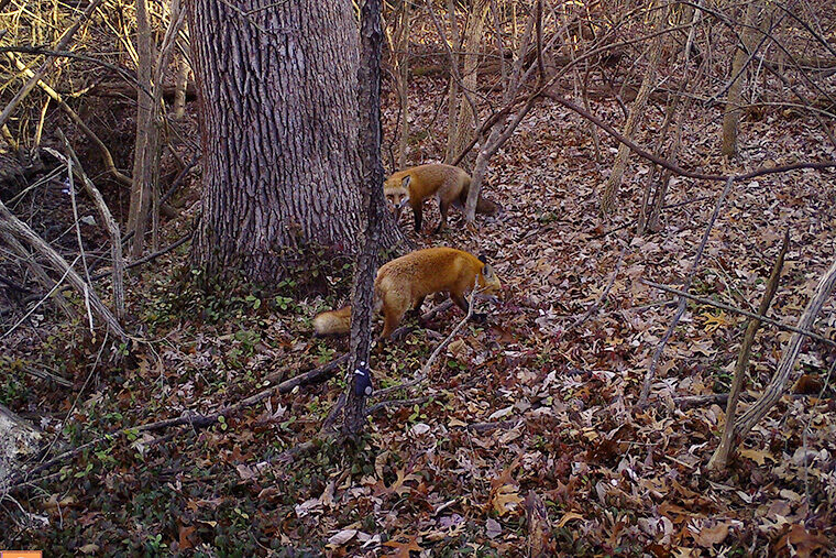 This image of two red foxes was captured Jan 5. by a motion-activated camera as part of the St. Louis Wildlife Project, a partnership among local scientists at St. Louis College of Pharmacy and the university’s Tyson Research Center, with the aim of quantifying biodiversity and understanding wildlife ecology in the greater St. Louis area.