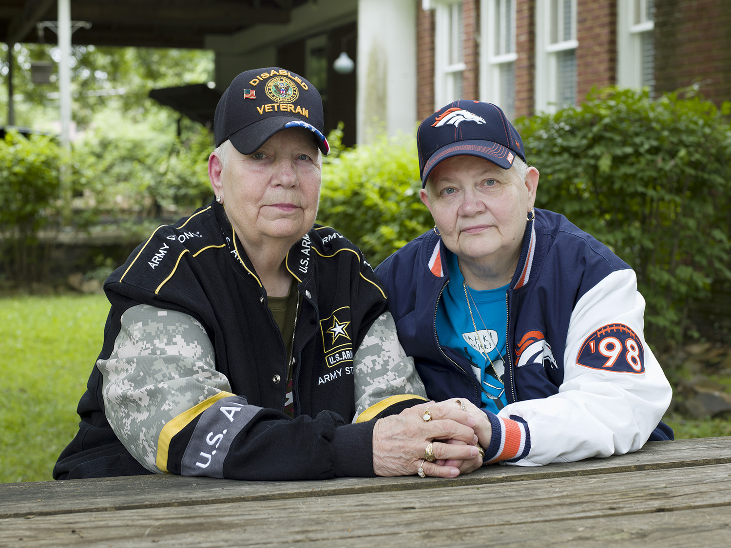 Duchess Milan stands at the balcony, white hair coiffed and feathered, gold walls lustrous as any throne. Louis sits in church, hands relaxed, leaning forward in a sun-dappled pew. Bobbi, an Air Force veteran, gently holds a model plane, wings wrapped in camoflauge.