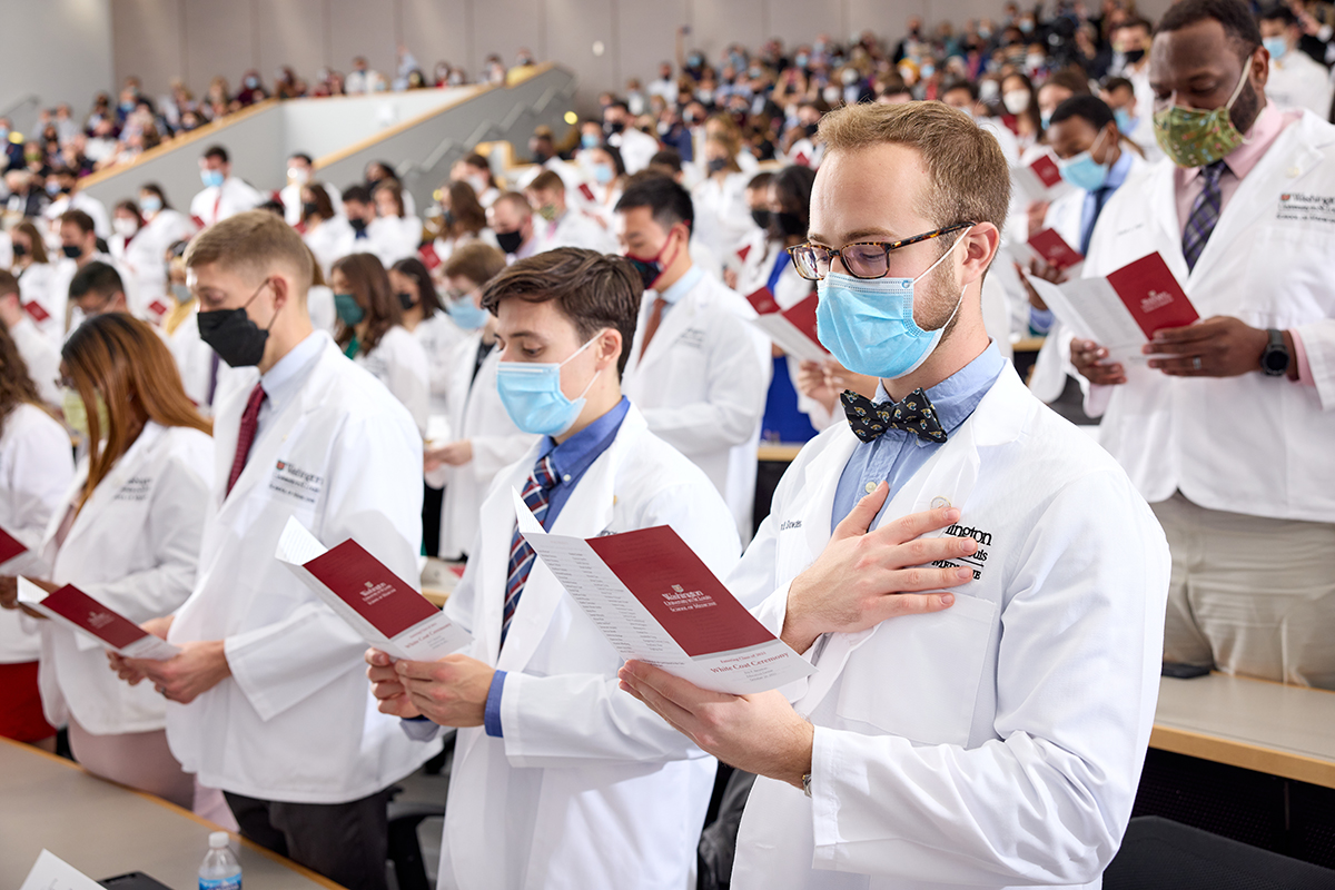 The incoming 2021 medical school class gathers for their White Coat Ceremony on Oct. 29 at the Eric P. Newman Education Center on the Medical Campus. (Photo: Matt Miller/School of Medicine)