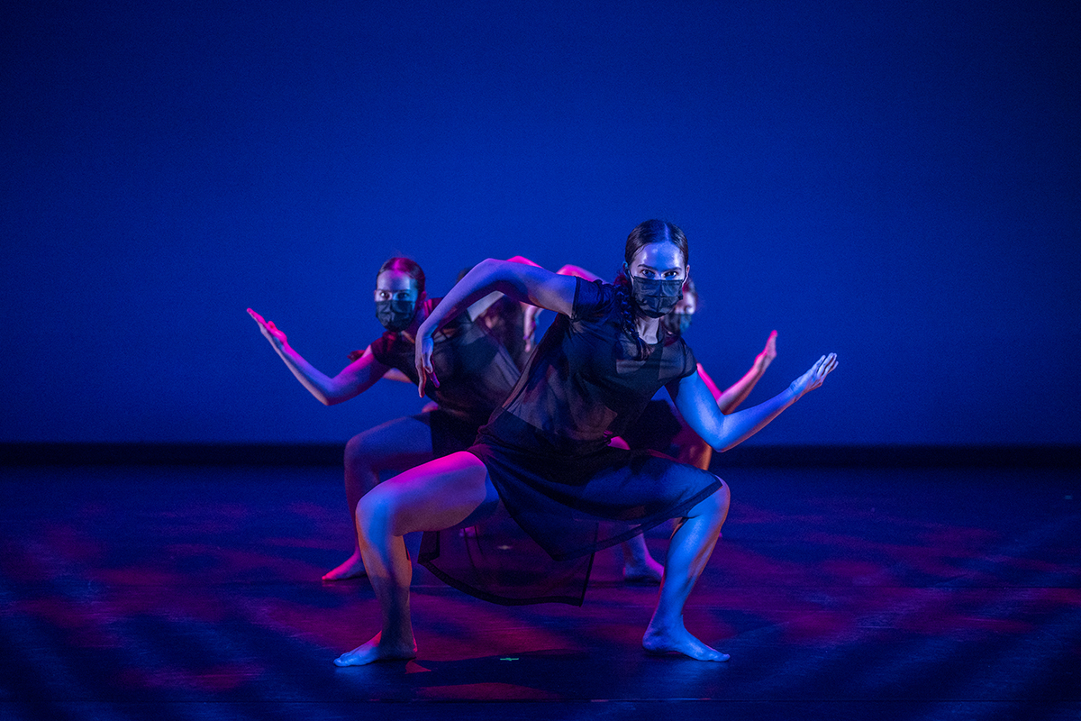 Dancers perform during the Washington University Dance Collective’s April recording of “Supper” in Edison Theatre. (Photo: Danny Reise/Washington University)