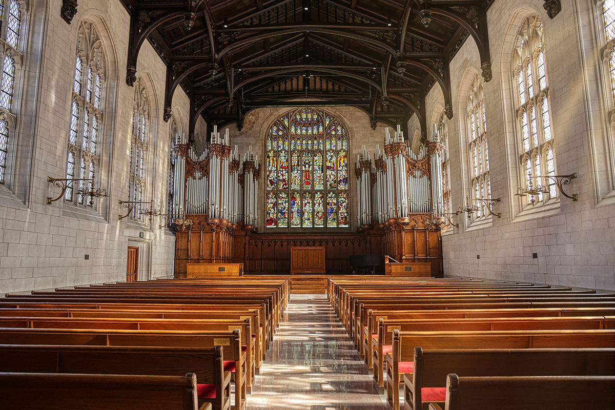 Dedicated in 1909, Graham Chapel on the Danforth Campus is a place for concerts, plays, lectures and events. It also offers a quiet space for students to reflect. (Photo: James Byard/Washington University)