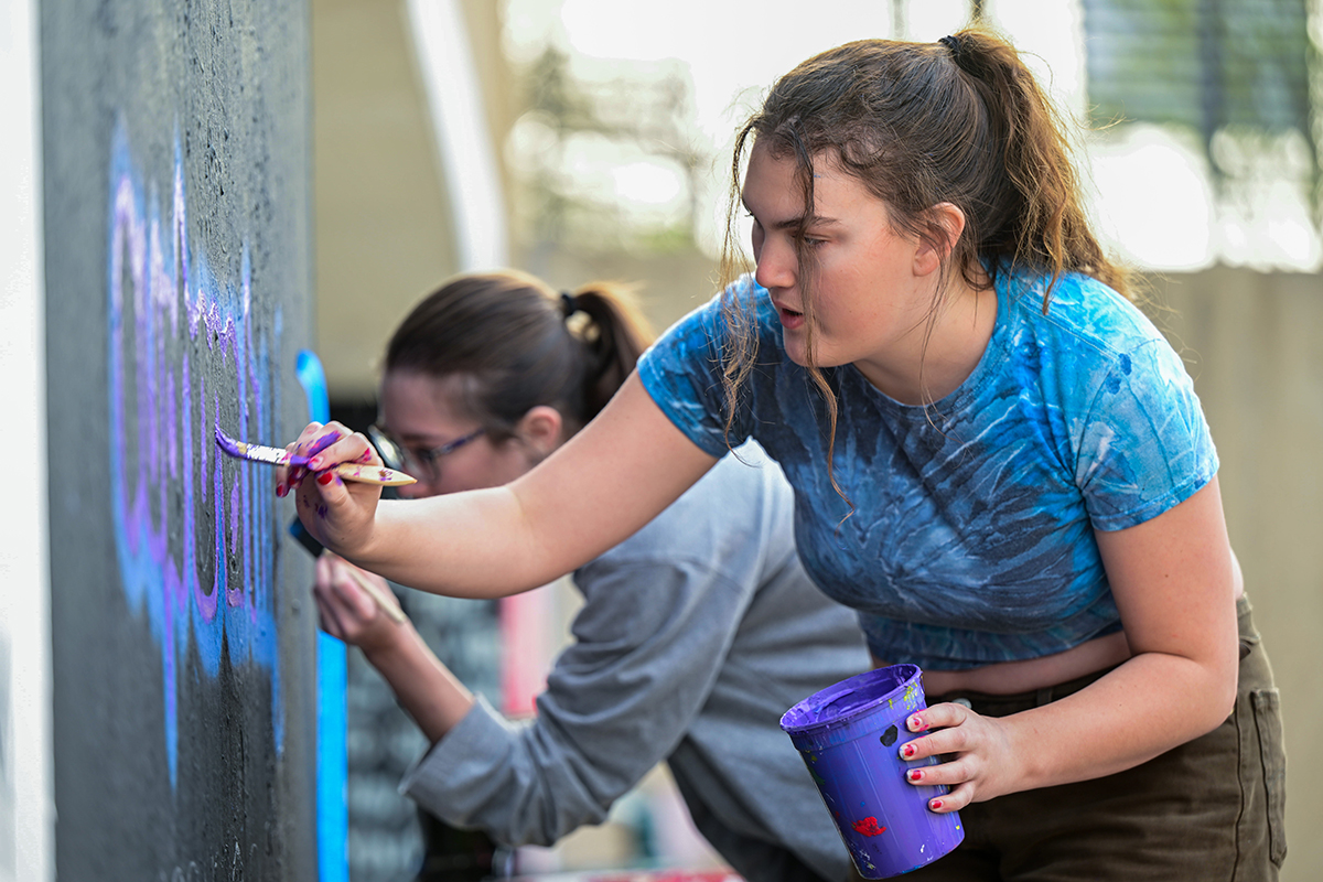 Students were encouraged to utilize their artistic talents by painting the underpass during the Res College Olympics on April 16. (Photo: Danny Reise/Washington University)