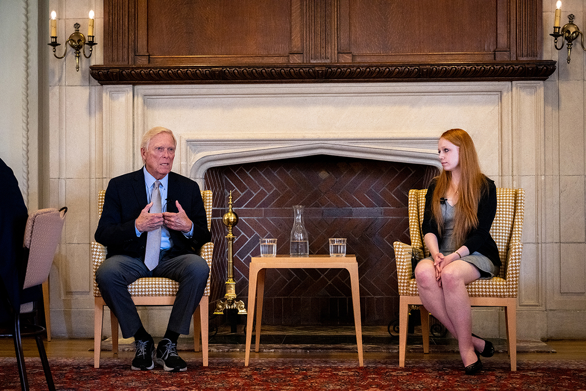 Former U.S. Rep. Dick Gephardt speaks at a luncheon for the Gephardt Institute Civic Scholars Oct. 6 at the Women’s Building Formal Lounge. The lunch included members of the institute’s National Advisory Council, select students and staff from the Gephardt Institute. (Photo: Carol Green/Washington University)