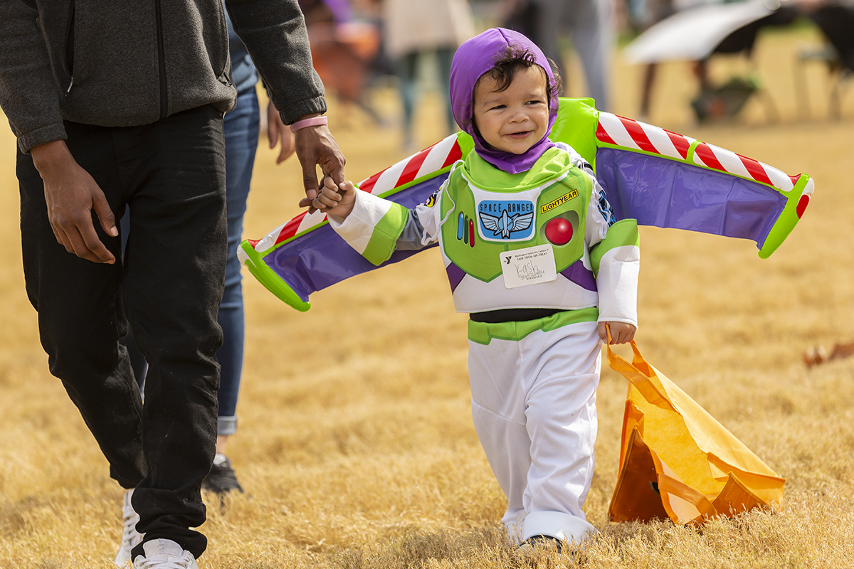 Kash Colvin, 2, dresses as Buzz Lightyear during WashU’s “Safe trick-or-treat” Oct. 23 on Mudd Field. (Photo: Jerry Naunheim Jr./Washington University)