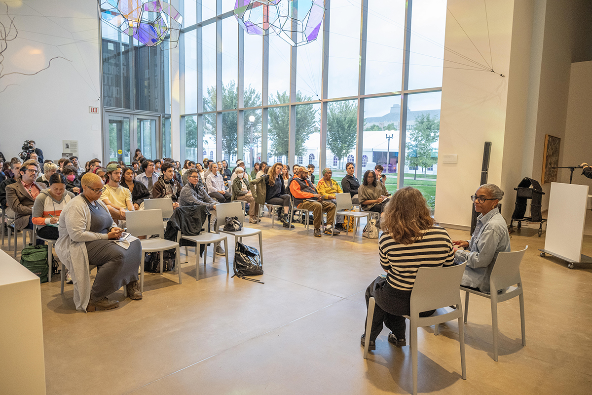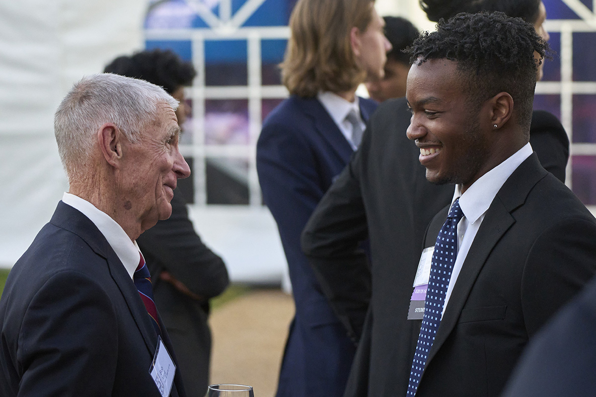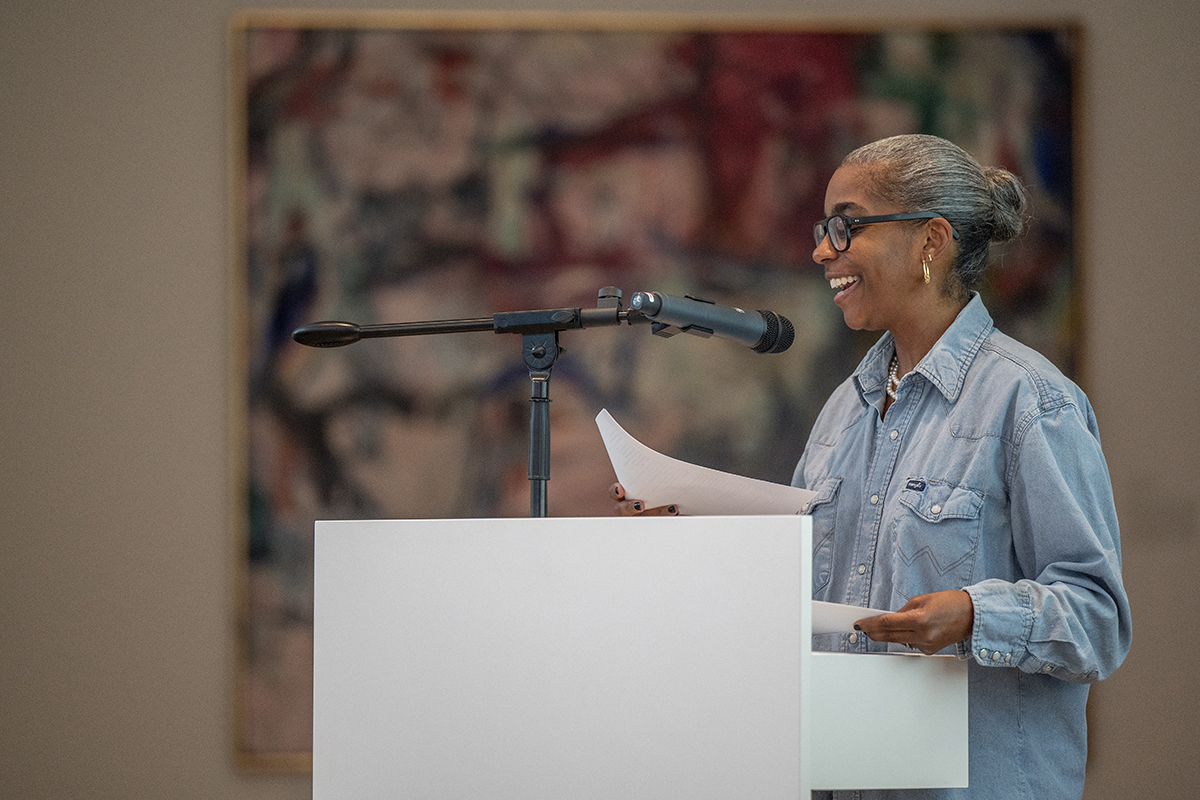 The Black Alumni Council celebrated its 40th anniversary with a Sneaker Ball during Black Alumni Weekend Oct. 14 in Tisch Park. Alumni don their colorful sneakers and also brought sneakers to donate to the LinkStL, a place-based organization in the Hyde Park neighborhood. (Photo: Danny Reise/Washington University)