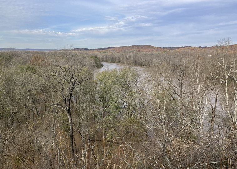 From her perch high above the Meramec River, undergraduate Margo Crothers eyed the floodwaters warily. As a Pathfinder Fellow, she could remember camping overnight at a site near the river’s edge. Now that edge was gone.