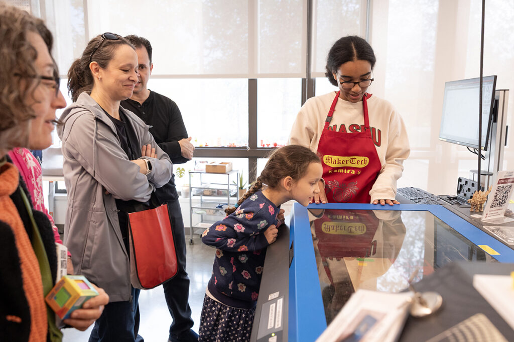 Attendees at the McKelvey in Action event participate in a demonstration in the Jubel Hall Makerspace. The event allowed student groups to network with alumni and to showcase their projects Nov. 8. (Photo: JJ Lane/WashU)