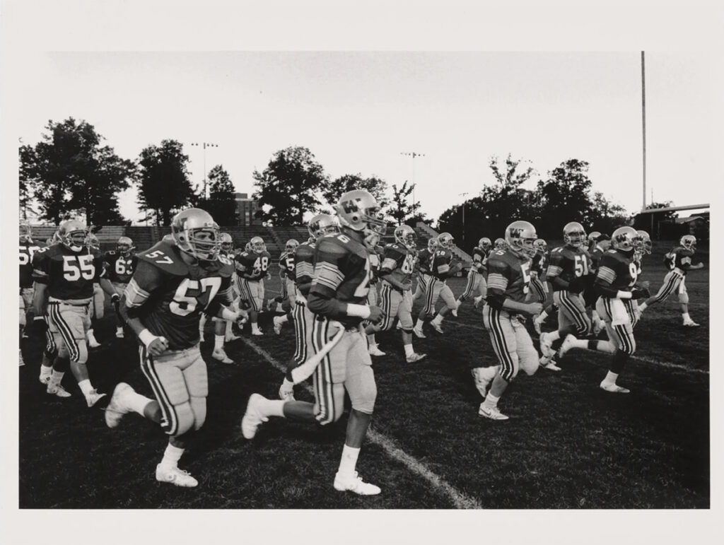 University archivist Sonya Rooney said the photos capture the university’s growth in size and stature. The collection includes, for example, a 1900 image of the Danforth Campus, originally known as the Hilltop Campus; a 1963 photo of the Bears football team and a 1993 photo of Chancellor William H. Danforth with the Dalai Lama as well as photos of WashU students, faculty and the signature grotesques peering from many an ediface.