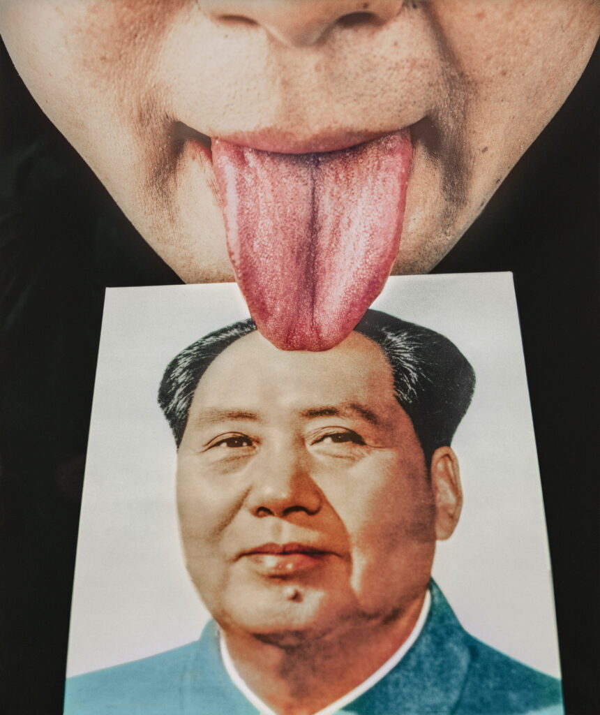 In “Hello Mr. Hong” (1998), Hong Hao slyly inserts himself as a Westernized business man into an image of upper-class consumption. For “Long March in Panjiayuan B” (2004), Hong digitally assembled an elaborate photo collage of memorabilia and propaganda associated with the Long March, a still-celebrated tactical retreat by Communist forces during the Chinese Civil War. Hong acquired these items not from historical archives, but at the famous Panjiayuan Bejing flea market, popular with international tourists, highlighting the changing cultural importance of this once-powerful visual iconography.