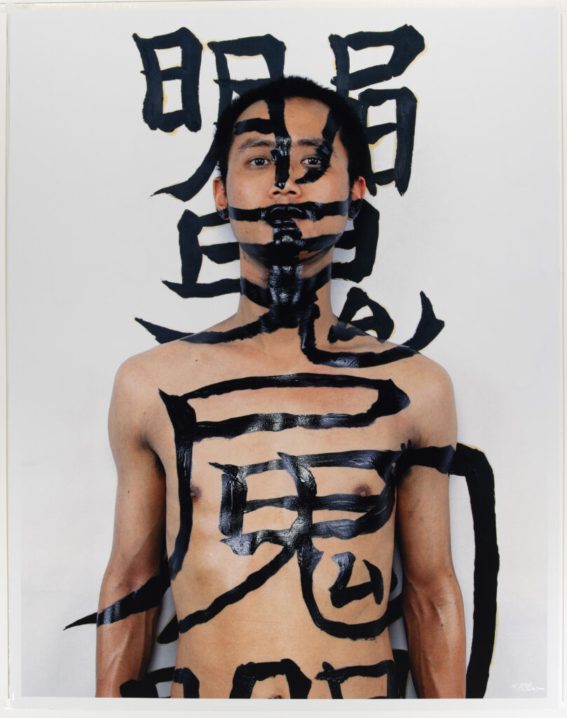 Cang Xin’s “Communication Series” depicts the artist tasting various physical objects — a book, a leaf, a turtle shell, a portrait of Mao. For “Tattoo Series No. 6” (1997), Qiu Zhijie, a classically trained calligrapher, paints bold, literati-style characters onto his face, body and surrounding surfaces. Huang Yan’s “Chinese Landscape Tattoo” series (1999) shows the artist’s chest, arms and hands covered by a traditional mountain scene. Delicately rendered by his wife and fellow artist, Zhang Tiemei, the image metaphorically links body and landscape, as well as individual and national artistic heritage. These impactful works demonstrate how Chinese avant-garde artists uniquely employed their bodies to challenge traditional art and explore the self.