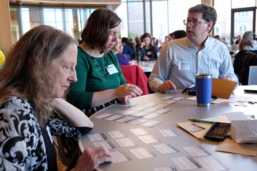 Conference participants also discussed practical ways to vary assessments and provide actionable feedback as well as tactics to establish rapport, such as mastering student names and welcoming students before the semester begins. The CTL also distributed decks of inclusive teaching strategies cards, which highlight proven practices such as diversifying course material, seeking student feedback mid-semester and observing group dynamics.