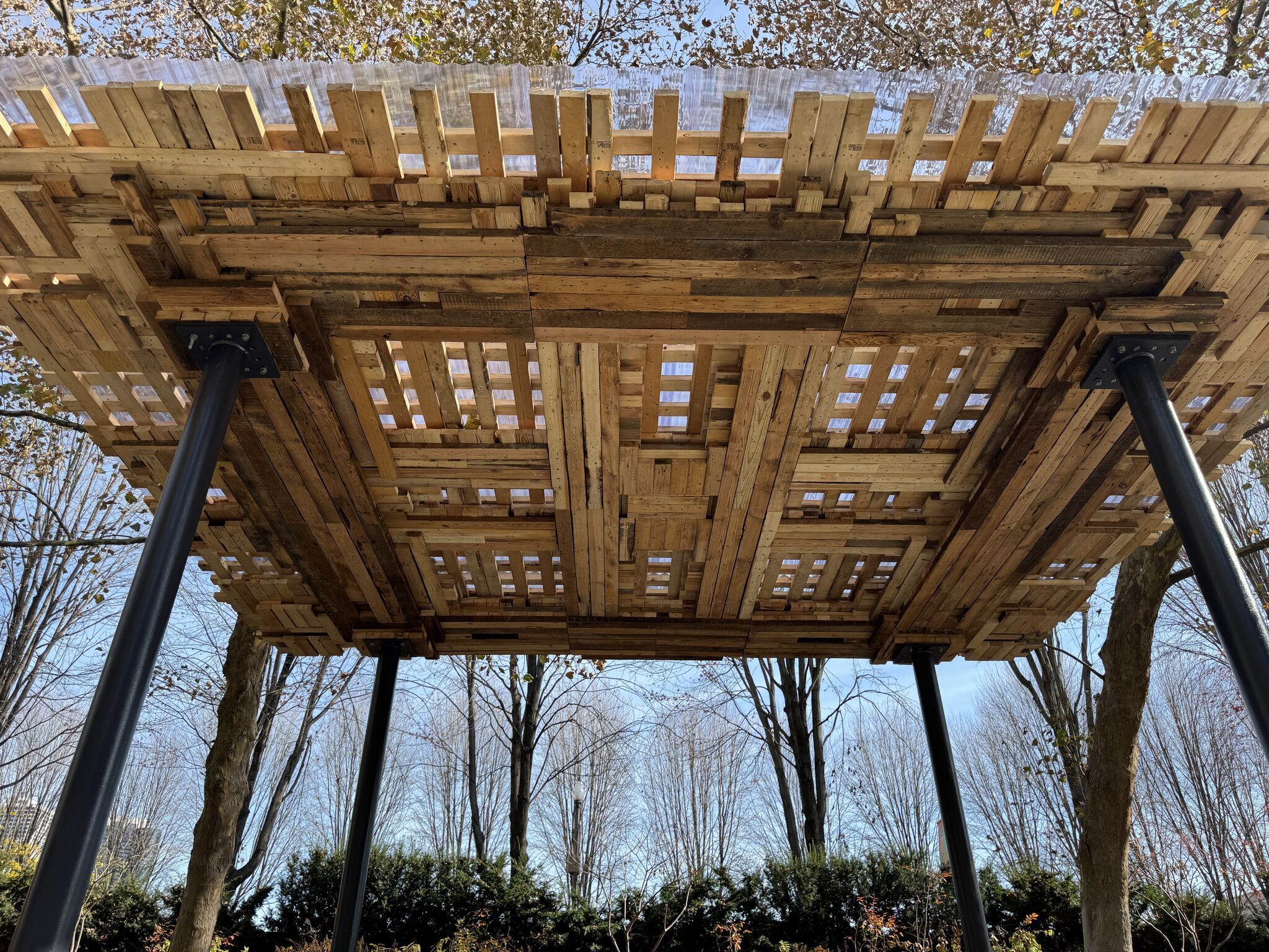 Installed in Millennium Park, Re-SPLAM is almost uncannily strong. In structural simulation testing, it surpassed Chicago snow load requirements, making it a potential alternative to steel or concrete. Further, by actively removing material from the waste stream, and through efficient off-site assembly at a Mid-America Carpenters training center, the pavilion’s construction sequestered more carbon than it released.
