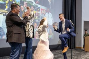 “Everything Under the Sun,” a bright pink steel installation by Jonathan Stitelman, a senior lecturer at the WashU Sam Fox School, has been installed in St. Louis’ Covenant Blu Grand Center neighborhood. A grand opening celebration will be held April 3.